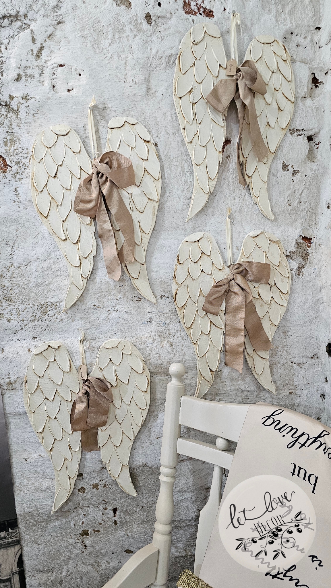 Antique White Angel Wings with Texture. Beautiful wallhanging, frontdoor decor or as a decor item on a table with other decor items. Hang in a group for extra impact.